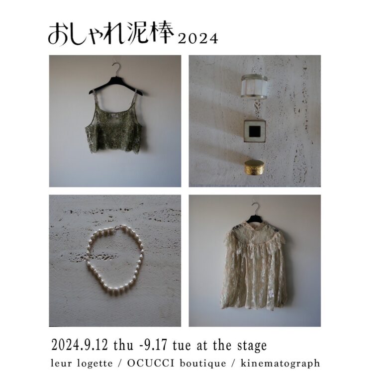 おしゃれ泥棒Vol.3in HIROSHIMA 9.12thu -17tue“THE STAGE “広島県広島市中区本通4−2411:00-19:00東京で開催されていたおしゃれ泥棒イベントが広島 the stage店にて地方初開催。各ブランドのオリジナルアイテムやスペシャルアイテムが勢揃い☆詳細はthe stageのInstagramで随時投稿されるので要チェック!各ブランド詳細はこちらから↓leur logette (wear)Kinematograph (vintage goods)OCUCCI boutique (jewelry)⚪︎各ブランド限定品を販売special guest<Baked Sweets Kuccui > スペシャル限定クッキー缶<releve botanical>スペシャル限定ハーブティーこのイベント限定のアイテムばかりですので、お誘い合わせの上お越しください。皆様のご来店心よりお待ちしております。