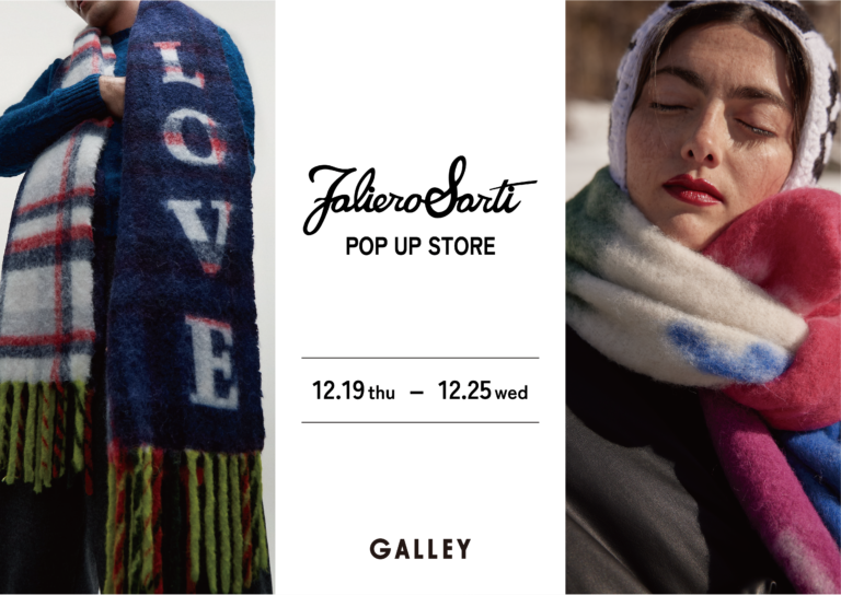 Faliero Sarti POP UP STORE & PERSONAL ORDER FAIR 12.19 (thu) – 12.25 (wed) 上記の期間中、GALLEYにてブランケットのパーソナルオーダー会を開催いたします。 4色のバリエーションで、お客様からお預かりした画像・ご希望のアルファベットを編み込んだオリジナルブランケットを作成いただけます。 同時に会期中だけのストールがバリエーションで揃います。 ぜひ、この機会にご覧ください。 ※詳細はInstagram又は店舗までお問い合わせください。 Instagramはこちらから↓@galley_hiroshima “Faliero Sarti”1992年イタリアにてテキスタイルメーカーとして創立したファリエロサルティ。常に編み方や染色技法を研究・開発し、世界的に名声のあるデザイナーや衣服メーカーから絶大な頼を寄せられています。老舗メーカーならではの豊富なヴァリエーションと高度な感性・創造性が生むラグジュアリーなストールは世界中で愛されています。