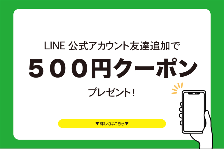 ただいま、LINEをお友達追加していただいた方全員にその場ですぐ使える500円OFFクーポンをプレゼント。