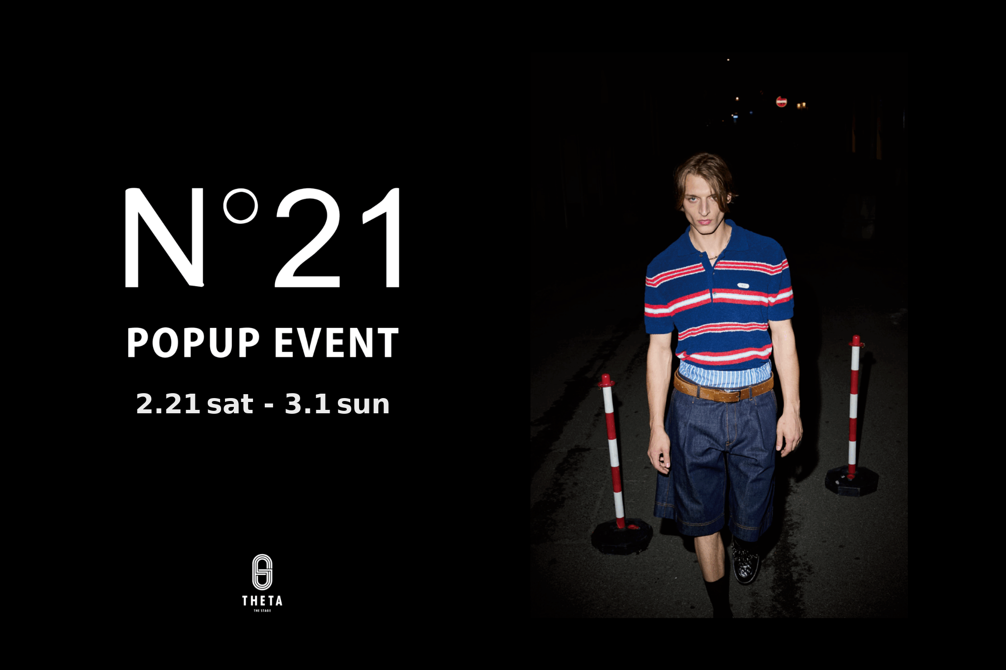 N°21 POPUP EVENT 2.21 sat - 3.1 sun イタリア発のブランド N°21(ヌメロ ヴェントゥーノ) のメンズコレクションが、期間限定でTHETA θに登場いたします。 今回のPOP UPでは、これからの季節に活躍する春夏コレクションを中心にラインナップ。 軽やかな素材感や抜け感のあるシルエットなど、春夏ならではのムードをまとったアイテムが揃います。 構築的で洗練されたデザインと、上質な素材使い。その絶妙なバランスは、メンズという枠にとらわれず、ジェンダーを超えて楽しめる魅力にあふれています。 一枚で主役になるトップスや、スタイリングにアクセントを添えるアイテムまで、女性にも取り入れていただけるユニセックスな提案も豊富にご用意。 季節の始まりに、新しいスタイルとの出会いを。 ぜひこの機会に、N°21の春夏コレクションをご体感ください。 皆さまのご来店を心よりお待ちしております。 THETA θ場所:広島市中区中町1−24クラース袋町公園2F定休日:不定休TEL :082-245-4377